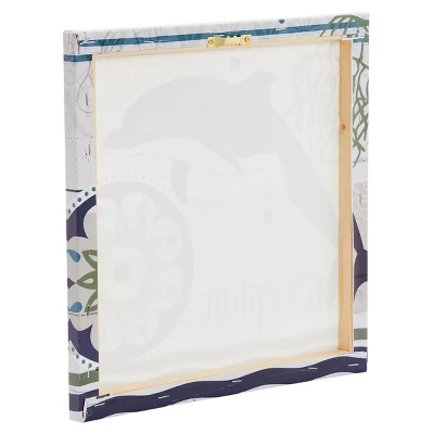 4 Piece Blue Beach Canvas Wall Art Set, Nautical Nursery Decor Print Set (4 Designs, 12 X 12 In)