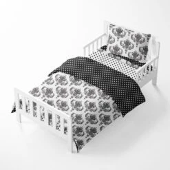 Bacati – Classic Damask Black/Grey/White 6 Pc Crib Bedding Set With Long Rail Guard Cover