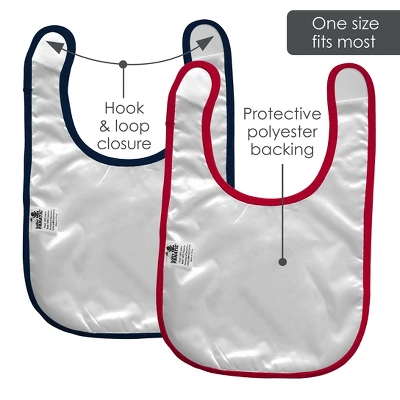 - Two bibs per pack – Get extra coverage for your little one with our unisex, infant, 2 bib pack. Show your team spirit with bright, vibrant colors that will stand out at the next game. Accidents happen, but with our durable bibs, you’ll be prepared.