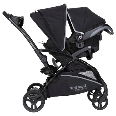 The Baby Trend® Sit N’ Stand® 5-in-1 Shopper Plus Stroller is perfect for your growing family. With the new compact and streamlined frame, our Sit N’ Stand® 5-in-1 Shopper Stroller has 5 modes of use – car seat travel system mode, car seat in the front seat with sibling on platform, child in the stroller seat only, child in the stroller seat with sibling sitting on bench, and child in the stroller seat with sibling standing. The front and back seats can hold kids up to 50lbs each.