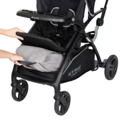 The Baby Trend® Sit N’ Stand® 5-in-1 Shopper Travel System is perfect for your growing family. With the new compact and streamlined frame, our Sit N’ Stand® 5-in-1 Shopper Stroller has 5 modes of use – travel system mode, car seat in the front seat and older child standing on platform, child in the stroller seat only, child in the stroller seat with sibling sitting on bench, and child in the stroller seat with sibling standing. The front and back seats can hold kids up to 50lbs each. The included infant car seat can accommodate weights from 4-35 lbs.