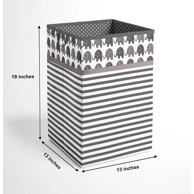 Need somewhere to toss your little ones outfit from last night? This collapsible hamper from Bacati has you covered! Measuring 14 inches by 14 inches by 19 inches, it provides a large amount of room to house all yesterdays clothes. Having a deep storage capacity, the hamper is perfect for multiple days worth of clothes. It is collapsible, saving you space when storing away. With a sturdy construction, this hamper is built to last and will make a great addition to any little ones room. The beautiful Bacati prints on the outside are the last cherry on top that makes this hamper extra special. Get your hands on Bacatis collapsible hamper today for a more lively and organized space! Dimensions: 19 H x 14 D x 14 W inches