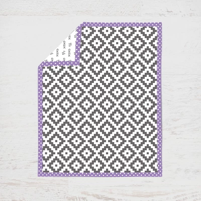 - This Bacati 10-piece Crib Set Includes Reversible Comforter/Playmat (33 x 43 inches), Crib fitted sheet (52 x 28 x 6 inches), Crib Skirt/Dust ruffle (13 inch drop) Diaper Stacker (holds more than 30 newborn diapers), Reversible Long Crib Rail Guard Cover (52 x 12 inches), Window Valance (15 h x 56 w inches with 1.75 inch Rod Pocket), 3 pc Wall Hangings Set and Musical Mobile in fun, colorful and signature prints in 100 percent cotton 200 Thread Count percale fabrics. Designed in United States by Experienced Designers. Many coordinating items available to purchase separately in this Bacati Love Aztec Gray Lilac Bedding Collection.