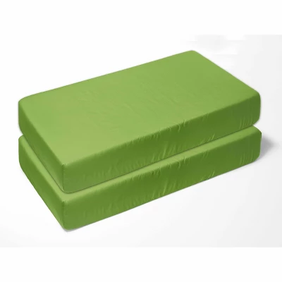 - This Bacati 10-piece Crib Set Includes Reversible Comforter/Playmat (33 x 43 inches), Two Crib fitted sheets (52 x 28 x 6 inches), Crib Skirt/Dust ruffle (13 inch drop) Diaper Stacker (holds more than 30 newborn diapers), Window Valance (15 h x 56 w inches with 1.75 inch Rod Pocket), 3 pc Wall Hangings Set and Musical Mobile in fun, colorful and signature prints in 100 percent cotton 200 Thread Count percale fabrics. Designed in United States by Experienced Designers. Many coordinating items available to purchase separately in this Bacati Mod Dots Stripes Green Yellow Beige Brown Bedding Collection.