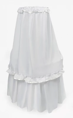 Badger Basket’s Majesty Baby Bassinet with Canopy comes complete with everything your baby girl or boy needs for the first few months of sleep. Cozy and comfortable, it includes a beautiful, perfectly accented bedding set. Flip up the wheels to rock the bassinet like a cradle! Metal frame assembles quickly and the bedding attaches easily. Complete bedding set (canopy, fitted sheet, and floor-length liner/skirt) and foam pad included. The skirt conceals the bassinet stand and hides the mesh storage basket. Ruffled, drape canopy flows down from the halo canopy frame at the top of the canopy pole. Canopy easily draws out of the way to tend to your precious bundle inside. Fitted sheet covers the custom fitted, vinyl-covered-foam pad. Mesh storage basket beneath the bassinet is handy for feeding and diaper changing necessities and toys. Fitted sheet is 80% Polyester/20% Cotton. Bedding fabric varies with color/style. Bassinet is made with powder coated steel metal tubing, PP and ABS plastic, nylon, MDF, PEVA (non-PVC) vinyl, and polyurethane foam. Overall unit measures 30.25 inches L x 16 inches W x 53 inches H with the wheels down (51.5 inches with the wheels up). Generously sized interior measures 30 inches L x 15.5 inches W x 9.5 inches deep. Measures 28.5 inches from the rim of the bassinet to the floor with the wheels down, and 26.25 inches with the wheels up. Foam pad measures 30 inches L x 15.5 inches W x 1 inch H. Mesh storage basket measures 19 inches L x 12.5 inches W x 4.5 inches H. There is about 5.5 inches of clearance between top of basket and bottom of bassinet. The bassinet base (below where baby sleeps) measures 19.5 inches L x 16.5 inches W x 18.5 inches H with wheels down, and 16.5 inches H with the wheels up for rocking. Assembled product weight: 12.1 pounds. All measurements approximate. All bedding is machine washable (in cold water and gentle cycle). Tumble dry low, warm iron if needed. Adult assembly required. Illustrated instructions included. Bassinet is for use up to 20 lbs. (9.09 kg), 3-4 months, or until Baby can push up, roll over, or sit unassisted (whichever limit comes first). In order to comply with current safety standards, the mattress does not exceed 1 inch in thickness. Mesh basket designed for lightweight items (up to 5 pounds total). Additional white polyester/cotton sheets sold separately in packages of two (Model #30099). Product includes a limited warranty of 30 Days Parts to the original purchaser. Product details/features subject to change at any time without notice. Props/accessories shown are for illustration purposes only and are not included with the product. Actual color/finish may vary slightly from screen display. This item ships in its original carton that may include a product photo.