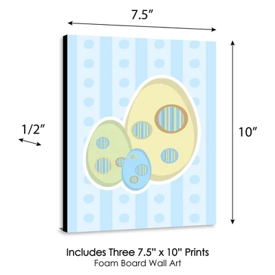 Baby Boy Dinosaur Wall Art Set INCLUDES 3 ready-to-hang baby dinosaur themed panels and non-marking wall mounts for easy hanging. Baby Boy Dinosaur artwork is perfect for a nursery, kids room or playroom. Baby Boy Dinosaur Wall Art & Kids Room Decor SIZE each 10 inches high x 7.5 inches wide x .5 inches thick. Baby dinosaur lightweight art prints will arrive ready to use – no frame needed. The black edge gives each print a modern, finished look. EASY TO HANG: Simply attach a non-marking wall mount (included) to each corner of a Baby Boy Dinosaur art panel and press to hang in desired location. Wall mounts are repositionable, so you can redesign your artwork display at any time. PREMIUM HOME DECOR: 3-piece Baby Boy Dinosaur Wall Art Set is professionally printed on thick material with a black edge. You will not need to frame this set of dinosaur baby room decor. Each standout print is ready to hang and will add a contemporary touch to any room. MADE IN THE USA: Baby Boy Dinosaur Nursery Wall Art & Kids Room Decor is designed and manufactured at our Wisconsin facility using materials that are Made in the USA.