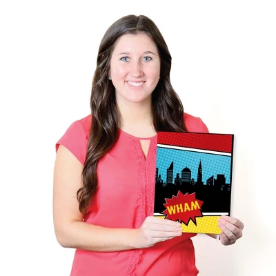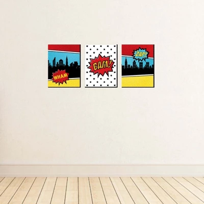 BAM! Superhero Wall Art Set INCLUDES 3 ready-to-hang comic book themed panels and non-marking wall mounts for easy hanging. BAM! Superhero artwork is perfect for a nursery, kids room or playroom. BAM! Superhero Wall Art & Kids Room Decor SIZE each 10 inches high x 7.5 inches wide x .5 inches thick. Comic book lightweight art prints will arrive ready to use – no frame needed. The black edge gives each print a modern, finished look. EASY TO HANG: Simply attach a non-marking wall mount (included) to each corner of a BAM! Superhero art panel and press to hang in desired location. Wall mounts are repositionable, so you can redesign your artwork display at any time. PREMIUM HOME DECOR: 3-piece BAM! Superhero Wall Art Set is professionally printed on thick material with a black edge. You will not need to frame this set of comic book room decor. Each standout print is ready to hang and will add a contemporary touch to any room. MADE IN THE USA: BAM! Superhero Nursery Wall Art & Kids Room Decor is designed and manufactured at our Wisconsin facility using materials that are Made in the USA.
