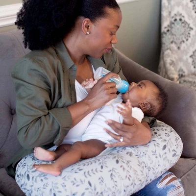 This Boppy nursing pillow provides ergonomic support for breastfeeding, bottle feeding, and bonding. The c-shaped design allows for multiple feeding styles—cradle, cross cradle, football hold and bottle feeding. Aids positioning for a better latch and back relief. Machine washable for easy cleaning with removeable pillow cover for added ease. The average nursing mom spends over 35 hours per week breastfeeding. Get the tools for the job with the Boppy Original Support Nursing Pillow. The beltless design allows for an easy, one-handed placement with no fuss, and the Miracle Middle panel provides a seam-free connection with your body for a more comfortable fit for c-sections or stomach tenderness after birth. This award-winning Boppy nursing pillow is a registry must-have and a parent favorite. Small enough to easily fit in your rocking chair or glider, but big enough to give the support you need. Support for you and baby with hypoallergenic fiber fill and a removable cover to help keep your breastfeeding pillow cleaner longer. A variety of Boppy Nursing Pillow Covers to fit your style are sold separately, from cotton blends to organics, so you always have backup on laundry day. Designed for your baby’s adult-supervised awake-time. This product is not for sleep. Thank you to the millions of parents who trust Boppy. Looking for extended sizes? Check out the Boppy Best Latch Support Nursing Pillow or the Boppy Anywhere Support Nursing Pillow for a perfect fit. This product should never be used for sleep. Our mission is to keep you feeling comfortable and confident with your decision to choose Boppy for high quality products, expert third party testing, and clear messaging. The AAP Safe Sleep Guidelines state that a baby should never be put to sleep with any pillow or plush product. Newborns should always be put to sleep on their back on a firm, flat surface free from loose blankets, pillows, stuffed toys, bumpers, and other soft items. Please always use products as intended.