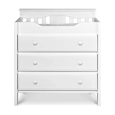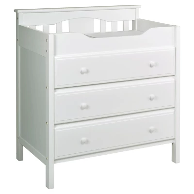 Clean and classic, the Jayden 3-Drawer Changer Dresser is a timeless nursery staple. Featuring a changing station on top, it also has three spacious drawers for all of baby’s supplies. When the time comes to transition, the changing pad can be removed and the changing station used to display baby’s most beautiful belongings or to keep frequently-used supplies at hand.