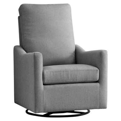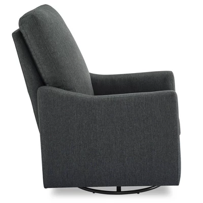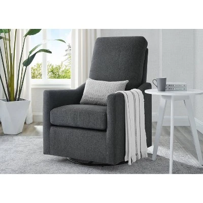 Designed for exceptional comfort, the Adley Nursery Glider Swivel Rocker Chair by Delta Children glides and swivels 360-degrees, making it the most soothing spot to lull baby to sleep. The chair’s whisper quiet movements ensure a serene environment while the soft seat cushion (6″” thick), padded armrests and backrest allow you to sit comfortably for hours. Its modern shape makes it an easy addition to your nursery or living room once your baby gets older. Assembled dimensions: 26.75″”W x 37.5″”D x 40.25″”H. Available in three colors: Charcoal, French gray and Cream. Removable seat cushion for easy cleaning. Delta Children was founded around the idea of making safe, high-quality children’s products affordable for all families. They know there’s nothing more important than safety when it comes to your child’s space. That’s why all Delta Children products are built with long-lasting materials to ensure they stand up to years of jumping and playing. Plus, they are rigorously tested to meet or exceed all industry safety standards.