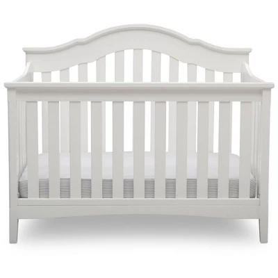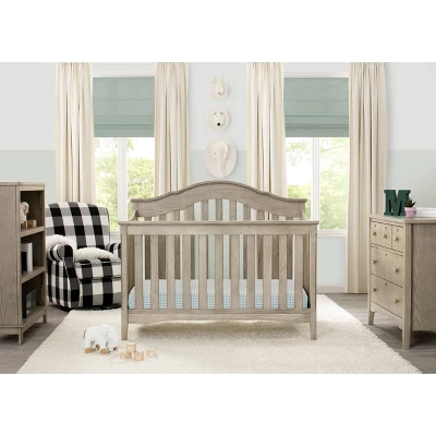 - Available in three rich, lightly textured finishes: Textured Limestone, Textured White and Textured Midnight Gray | This baby crib coordinates with other items in the Delta Children Farmhouse Collection.