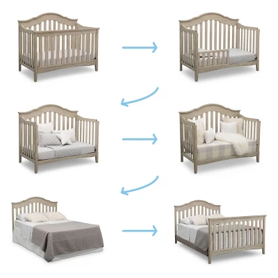 The elegant curves of the Farmhouse 6-in-1 Convertible Baby Crib from Delta Children are brought to life with a lightly textured finish. A great option for your baby’s nursery, this convertible crib features a dramatic silhouette that will make it the focal point of any bedroom-its grow-with-me design features three adjustable height levels that allow the crib to be lowered as your child grows, plus it converts from a crib, to a toddler bed, love seat, daybed, full size bed with headboard or full size bed with headboard and footboard. The only bed your little one will ever need, this versatile crib will take you from the nursery to high school, and all the years in between.