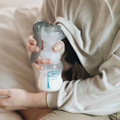 Late night pumping. Engorgement relief. Even a full expression session. The Dr. Brown’s™ Manual Breast Pump with SoftShape™ Silicone Shield is your quiet yet powerful pumping companion. The soft, 100% silicone SoftShape™ Shield conforms to different breast shapes, offering flexible, more comfortable pumping for more moms. Two pumping modes better mimic baby’s natural feeding; start with shorter, quicker pumps to stimulate letdown, and with an easy adjustment, switch to longer pumps to imitate baby’s more relaxed feeding. The Dr. Brown’s Manual Breast Pump comes with the Dr. Brown’s™ Options+™ Anti-Colic Wide-Neck Bottle featuring the breast-like nipple in Level 1 Slow Flow. Throw in the Storage Travel Cap, and you have everything you need to pump, store and feed! SoftShape™ Silicone Shield comes in Size B (25 mm). Additional sizes available for purchase. All parts are dishwasher safe (top rack). BPA free.