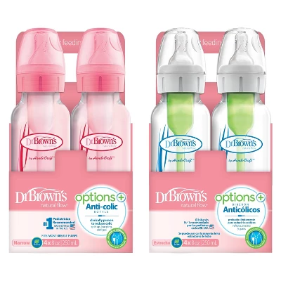 Your options have never been better with Dr. Brown’s Natural Flow Anti-Colic Options+ Narrow Baby Bottle. The anti-colic internal vent system is clinically proven to reduce colic. Dr. Brown’s bottles provide a more comfortable feeding experience for baby by decreasing spit-up, burping and gas. This vacuum-free feeding is closest to breastfeeding and Dr. Brown’s silicone nipples provide a consistent flow so baby can feed at their own pace. The breast-like nipple shape encourages a proper latch for a more natural bottle feeding experience and eases the transition from breast to bottle and back again. Dr. Brown’s vent system is proven to help preserve bottle milk nutrients and aids in digestion for a better night’s sleep. The silicone nipple, together with the internal vent system, offer a reliable and trusted bottle feeding experience that makes Dr. Brown’s the #1 Pediatrician Recommended Baby Bottle in the U.S.* Made to grow with baby, our bottle is designed to nourish through all of baby’s feeding stages and is recyclable. Safe for use in dishwasher (top rack only), electric and microwave sterilizers or boiling water. BPA Free. *IQVIA Health ProVoice Survey 2022