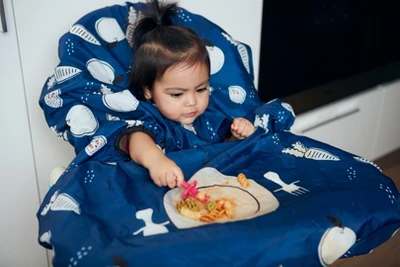 - Completely Covered Nothings as adorable (or messy) as a baby smacking on snacks. Bypass the stress of cleaning by covering baby and high chair in the waterproof bibs for girls and boys, and savor the cuteness!