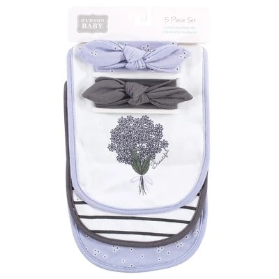 Hudson Baby bibs and headband set are an adorable accessory set for fashionable matching bibs and headbands and a great baby shower gift. Each set features three bibs and two headbands with coordinating fun, stylish prints. Our accessory set is a great baby shower gift. Hudson Baby Infant Girl Cotton Bib and Headband or Caps Set 5pk, Classic Floral is a great baby essentials set for your little one.