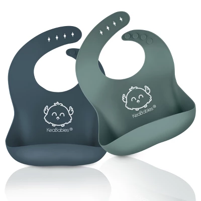 KeaBabies Prep Silicone Bibs are crafted from soft and lightweight food-grade, BPA-free silicone. Our baby bibs for eating come with a deep, sturdy spill pocket for mess-free mealtimes. Designed with adjustable buttons, our silicone bibs for babies 6-12 months and toddlers 1-3 years, fits growing boys and girls. Easily clean these waterproof baby feeding bibs in the dishwasher. Encourage independent eating and enjoyable BLW experience with our twin pack silicon toddler bibs with food catcher.
