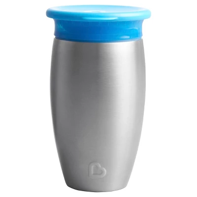 Miracle Stainless Steel 360° Sippy Cup is here to “steel” your heart when it comes to sippy cups! Let’s face it: toddlers are a messy bunch, especially when first navigating sippy cups. Now imagine a world in which drinks didn’t spill at all-no, it’s not a miracle- it’s Munchkin’s Miracle 360° Cup. This premium double walled, vacuum sealed stainless steel sippy cup keeps liquids cool for fresh and cold toddler drinks all day. Light-weight stainless steel material is extremely durable and double wall design won’t sweat or get hands cold. Patented 360° rim eliminates messes and supports kids’ dental health all at once because drinking from anywhere around the rim, like a regular cup, helps support normal muscle development in a child’s mouth. Also includes matching cup lid to keep drinking edge clean on-the go! With no extra spouts, straws or pieces, the Miracle 360° Cup is easy to use and even easier to clean. We’ll say cheers to that!