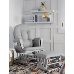 Storkcraft Hoop Glider And Ottoman – Pebble Gray Frame/Light Gray Fabric