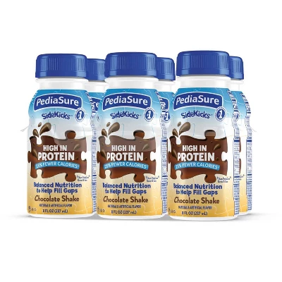 PediaSure SideKicks nutrition shakes have balanced nutrition to help kids catch up on growth. Each protein shake has 10g of protein, 27 essential vitamins & minerals, and 3g of fiber†for kids who may be missing key nutrients. PediaSure is the #1 pediatrician recommended brand. PediaSure SideKicks is available in three delicious, kid-approved flavors: Chocolate, Vanilla, and Strawberry. * Nutrition information sourced from USDA FoodData Central, fdc.nal.usda.gov. Accessed July 25, 2022. †Contains 6g of total fat per serving.