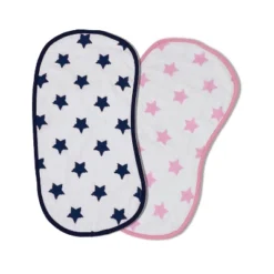 Bacati – Stars Pink/Aqua Ikat Muslin 4 Pc Set Of Bibs & Burp Cloths Set