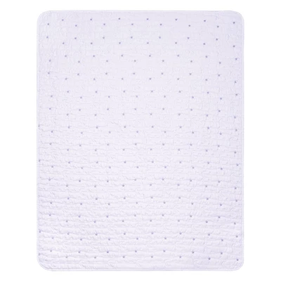 Add a cozy touch to your nursery with the Sammy and Lou Moon and Stars Quilt. This soft microfiber quilt features an embroidered moon and stars pattern stitched in gray on soft white. Perfect for cuddling, tummy time and more! Quilt measures 35 in x 45 in.