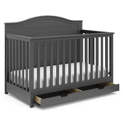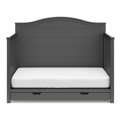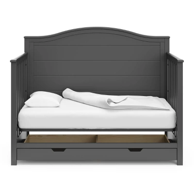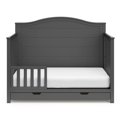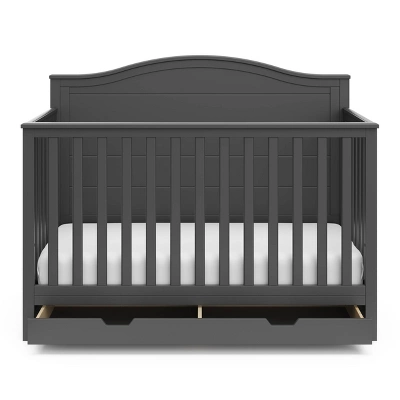 - 5-in-1 CONVERTIBLE CRIB WITH DRAWER: The Storkcraft Moss Crib Converts from baby crib (mattress sold separately) to toddler bed (compatible with 1 or 2 toddler guardrails, each sold separately), daybed, and full-size bed with headboard & optional footboard (compatible full-size conversion kit sold separately)