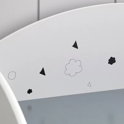 This adorable 5-piece Talori Kids Set from Buylateral includes a round table, two chairs with a matching bookshelf and toybox. Each piece features a fun gray-and-white palette, ideal for both boys and girls, accented with printed clouds, triangles, and other shapes. It is the perfect set for free play with the coordinated book case and toybox allowing for easy clean-up. Approximate weight capacity is 50 lbs.